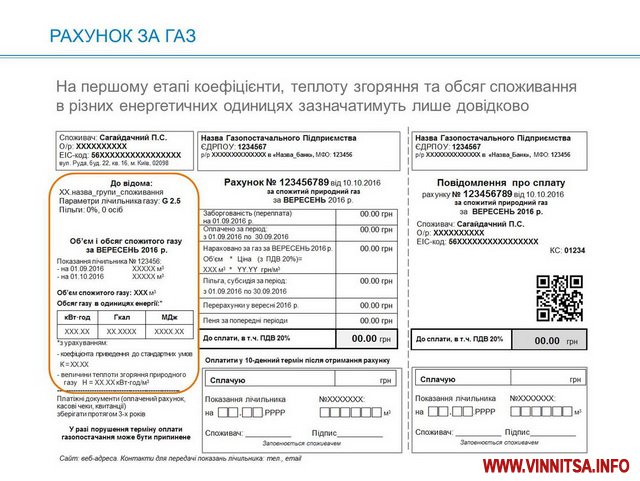 Платіжки за спожитий газ змінять свій вигляд. У травні вінничани отримають квитанції, в яких зазначатимуть кількість використаного «блакитного» палива не лише у метрах кубічних, але й в енергетичних одиницях: калоріях, джоулях і кіловат-годинах. Наразі такі зміни мають лише інформаційний характер, адже ніяк не вплинуть на вартість палива.