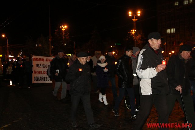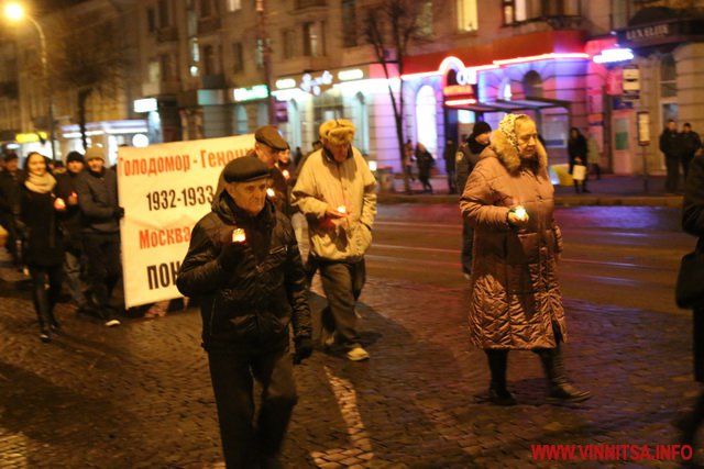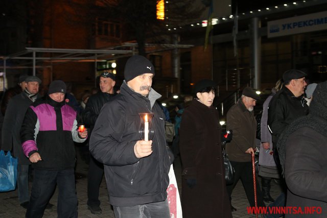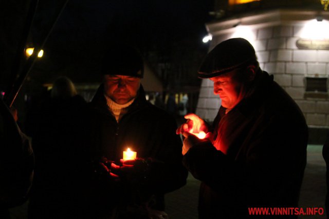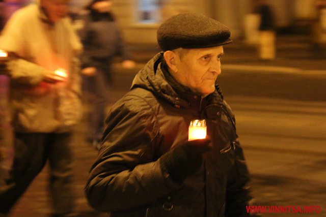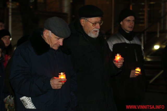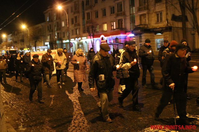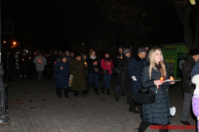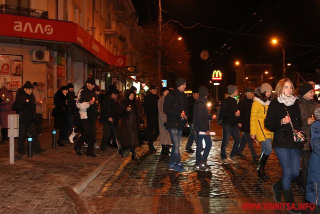 26 листопада у Вінниці ввечері більше сотні людей долучилися до скорботної ходи, присвяченої вшануванню жертв Голодомору.