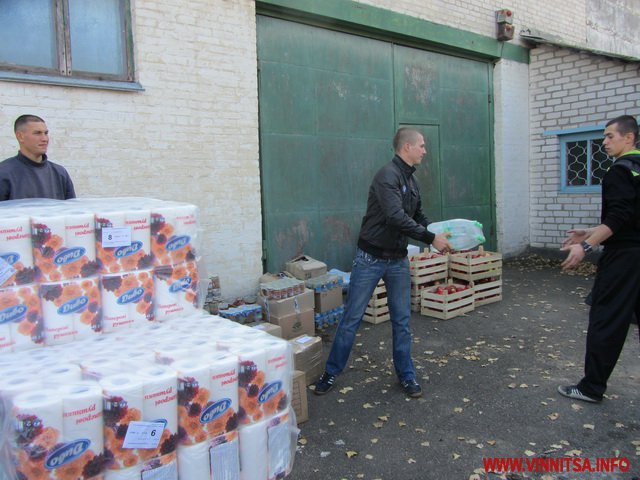 «Всю зібрану продукцію ми відправляємо у зону АТО, для наших бійців, які знаходяться в Краматорську і Попасній. Також зібрали для дітей в Краматорську цукерки і печиво. Окрім того, готуємо до відправлення «буржуйки» та проводимо ремонт польових кухонь і двох авто «ГАЗ-66», які потім передадуть нашим військовим», - говорить начальник УМВС у Вінницькій області Ігор Моренець.