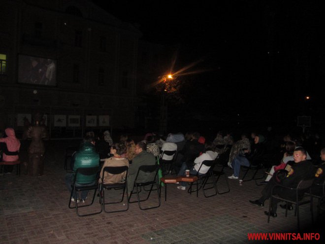 О 20 годині на Європейській площі зібралися кілька десятків глядачів. Навіть дрібний дощ не розігнав бажаючих першими в Україні побачити фільм про Чорнобиль, експерименти і паралельний світ.