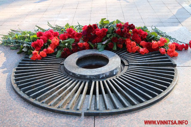 Десятки вінничан під пісню «Плине кача» поклали квіти до пам’ятника Героям АТО і Небесної Сотні та до Меморіалу Слави.