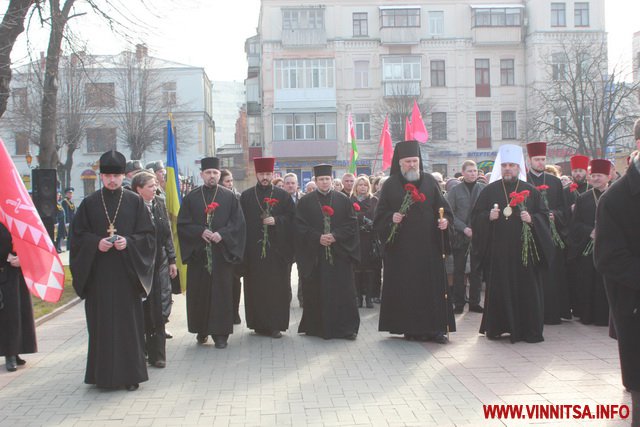 На церемонію покладання квітів завітали керівники області, міста, а також військові, духовенство, працівники комунальних закладів, учні та студенти та ветерани.