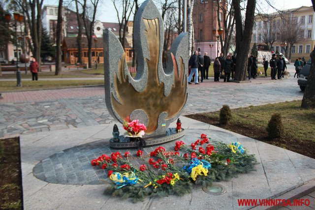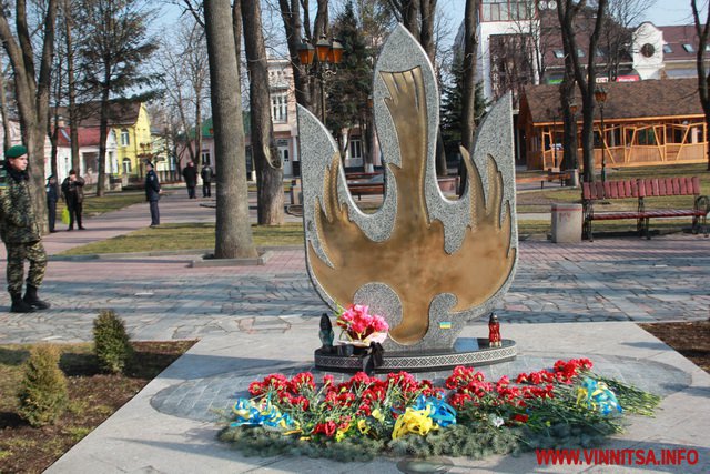 Квіти покладали також до пам’ятного знаку Героям Небесної Сотні.