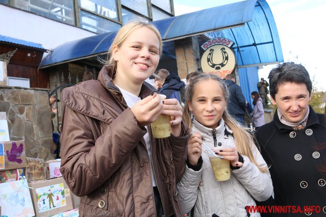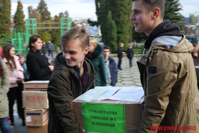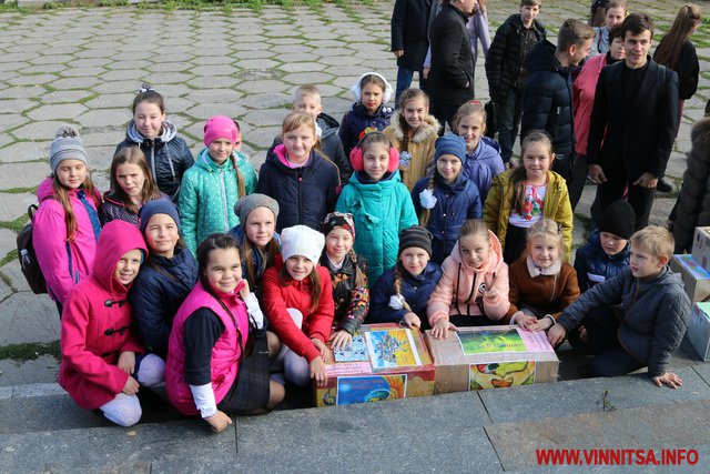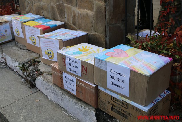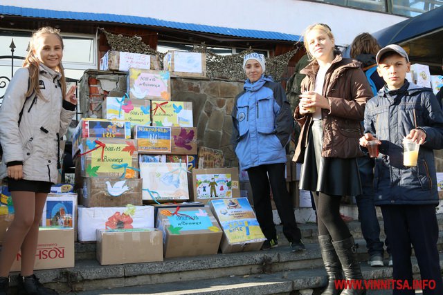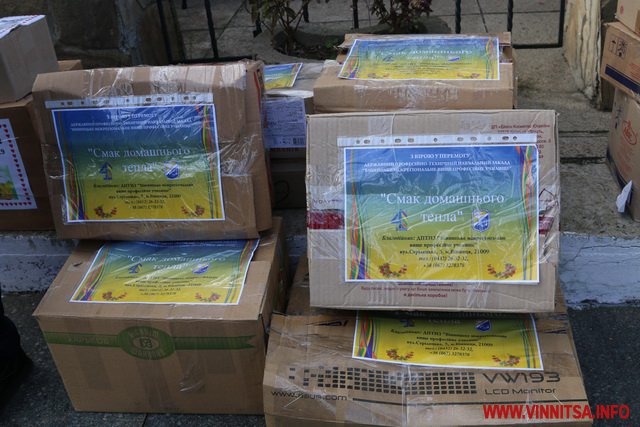 Учні та студенти навчальних закладів, а також небайдужі вінничани принесли кілька сотень банок із різноманітною консервацією, а також чай та каву. На кожній коробці з банками діти залишили патріотичні малюнки та листи для Захисників.