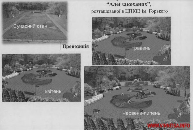Проект передбачає ремонт вже існуючої «Алеї закоханих» у Центральному парку ім. Горького. Автори ідеї хочуть, аби цей куточок став дійсно романтичним і приваблював до себе весільні церемонії, туристів та місцевих городян.