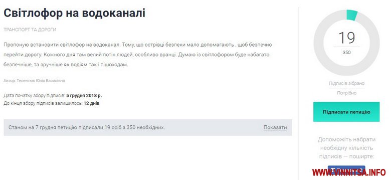 Сьогодні петицію підтримали 19 осіб. Аби її розглянули у міській раді і надали офіційну відповідь, потрібно 350 підписів.