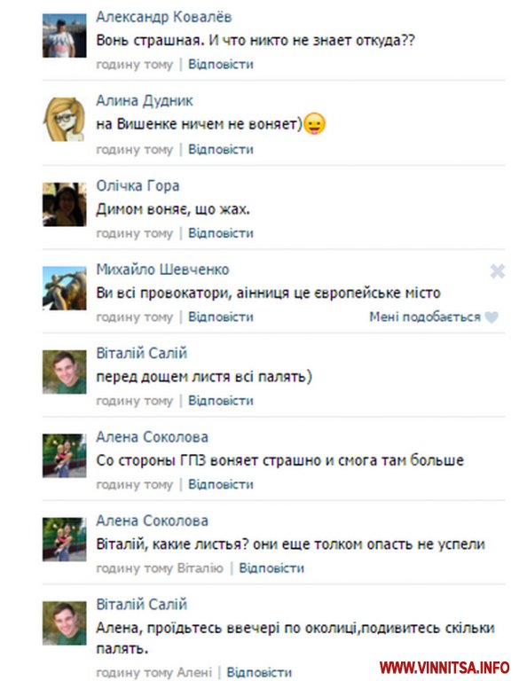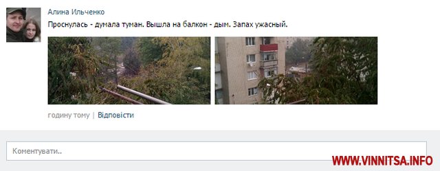 Вранці 19 жовтня у Вінниці їдкий запах диму та туман. Городяни скаржаться на ускладнене дихання. Схоже явище було на початку вересня, тоді місто взагалі кілька днів було в диму.