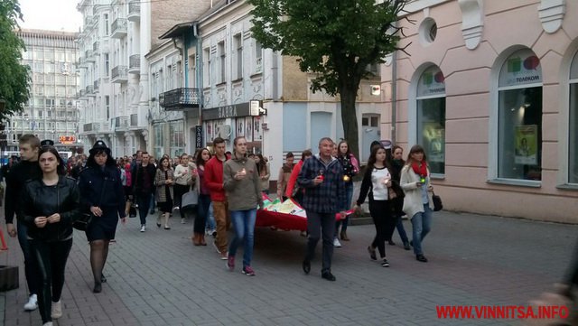 15 травня у Вінниці ввечері близько сотні студентів вінницьких ВУЗів долучилися до ходи в честь пам’яті про померлих від СНІДу.