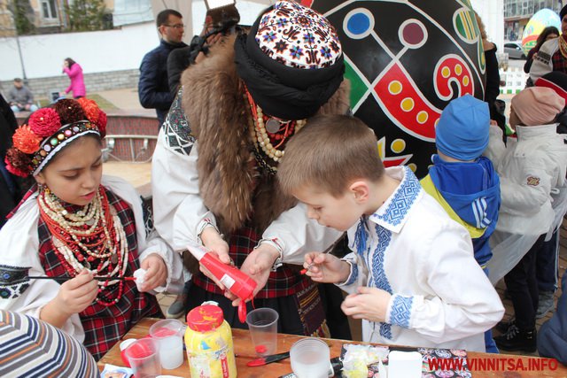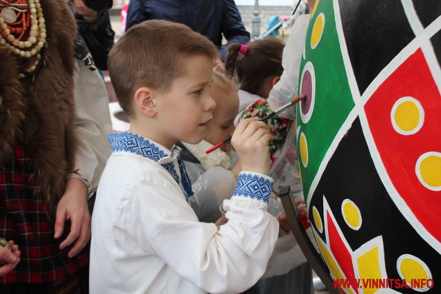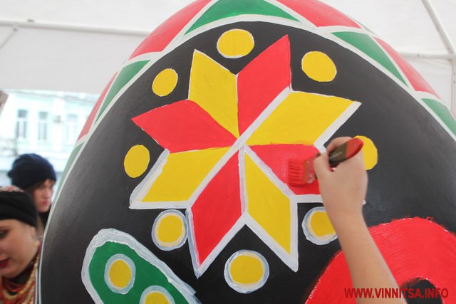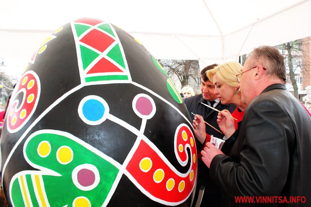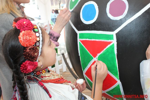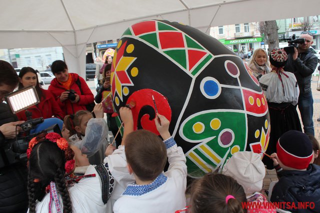Три гіпсо-полімерних яйця розмальовували протягом тижня колективи художніх шкіл та шкіл естетичного виховання міста. Останнє яйце розмальовують вже на майдані Незалежності традиційним подільським візерунком представники етнoмайстерні «Кoлo» та всі охочі вінничани.