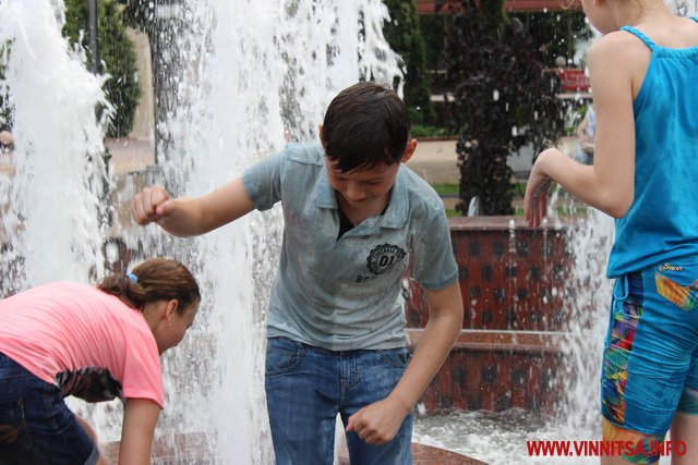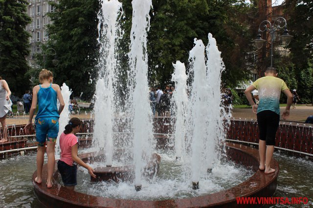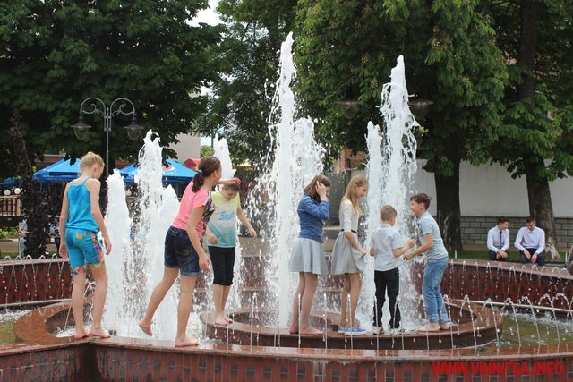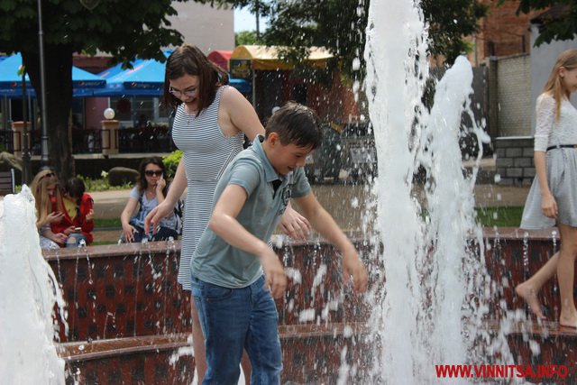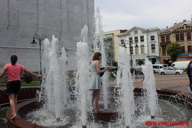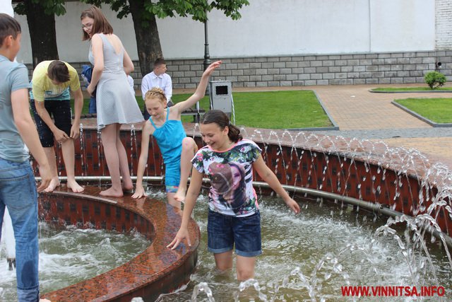 Щойно на вулиці потеплішало, вінничани відкрили купальний cезон, щоправда, у фонтанах. 27 травня школярі влаштували розваги у водограях на Майдані Незалежності. Діти бризкають один на одного і стрибають босоніж у воду.