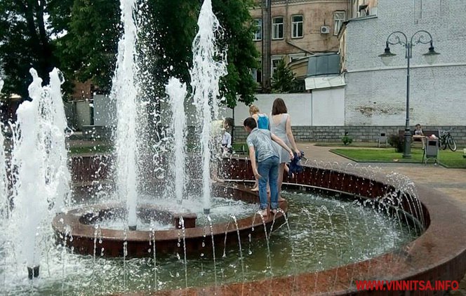 Варто зазначити, що вінницькі фонтани кілька разів на рік стають місцем для розваг. Городянам не забороняють плескатися у спеку, однак частенько саме через це у водограях ламається освітлення і не витримує кахель.
