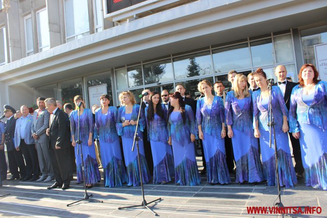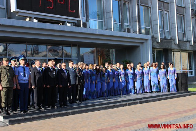 Після урочистого підняття прапора вінничани разом з академічним міським камерним хором «Вінниця» заспівали гімн України.