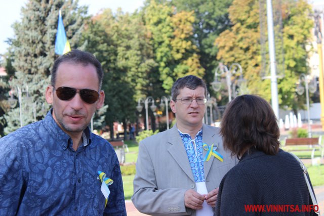 До заходу долучилися керівники міста та області, вінничани та учасники АТО. Вінничани вже традиційно прийшли на свято у вишиванках.