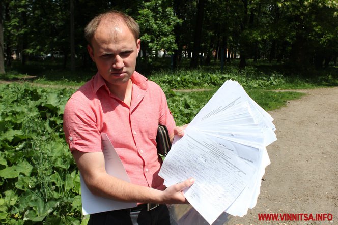 Вирішили боротися за парк. 24 квітня створили ініціативну групу і почали збір підписів. Звичайно, про все повідомили міську раду. За два тижні нам вдалося зібрати 1700 підписів при необхідних 1500», - розповів вінничанин Сергій Попович.