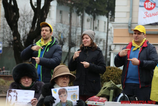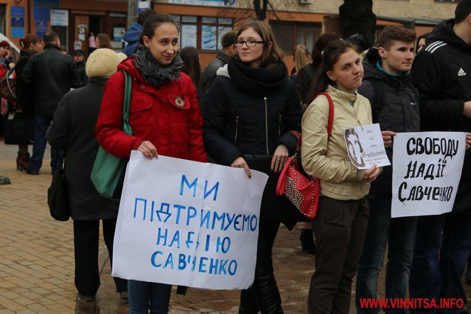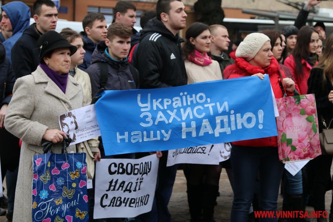 9 березня сотня вінничан вийшли на мітинг в підтримку Надії Савченко, яку незаконно утримують в російській в’язниці. Городяни тримали в руках плакати з надписами «Free Savchenko» «Надія, ми з тобою» та вигукували «Надії волю!».