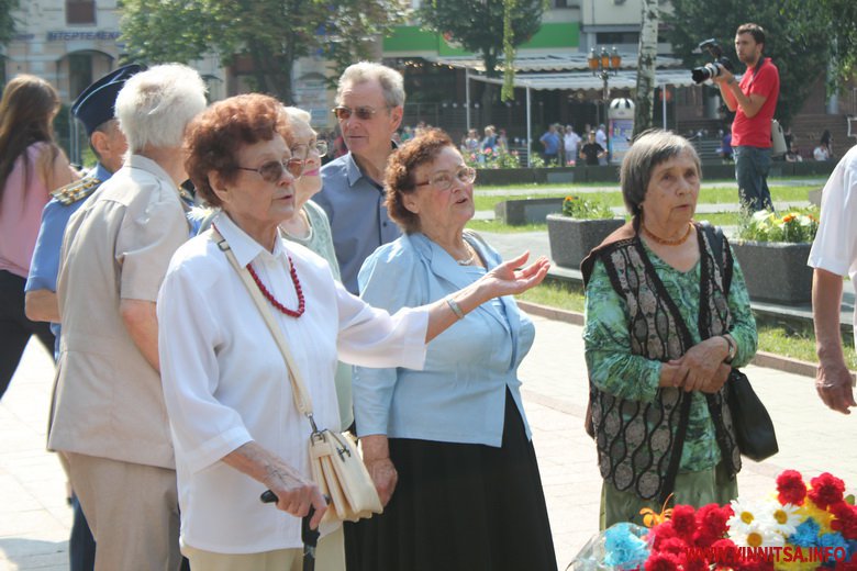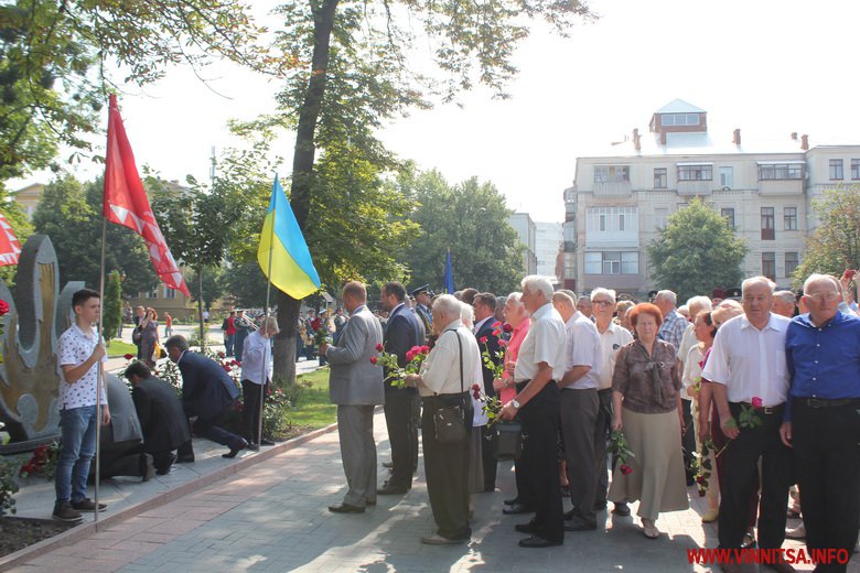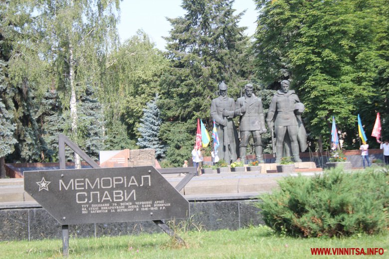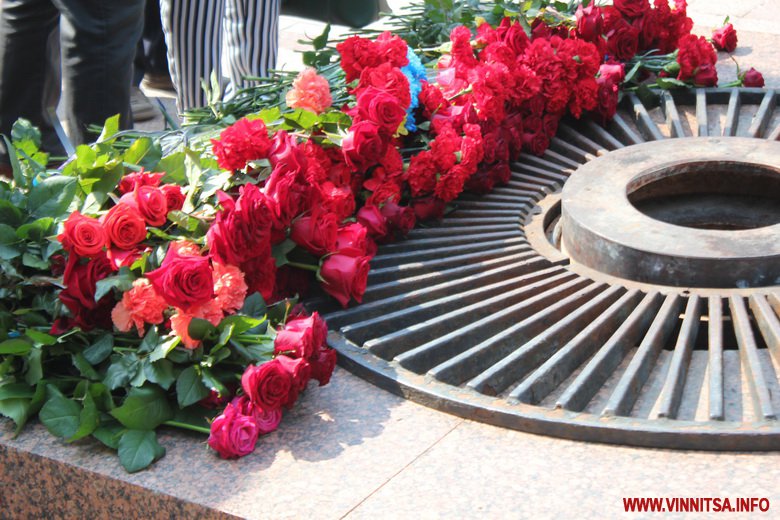 Десятки вінничан, під акомпанемент пісні «Степом, степом…» віддали належну шану визволителям України від нацистських загарбників.