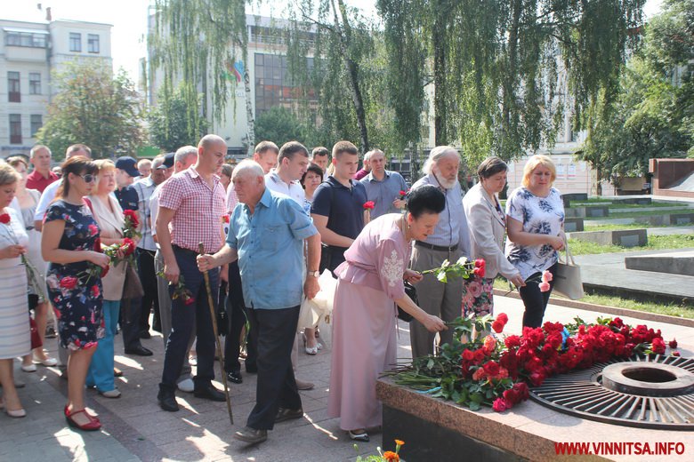 З цієї нагоди у Вінниці на Європейській площі відбулося покладання квітів до Меморіалу Слави та до Пам’ятника Героям АТО та Небесної сотні.