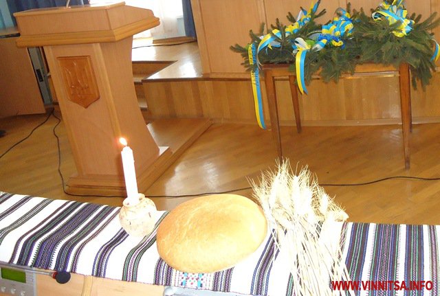 О 12:00 в урочистих зборах у залі обласної ради з нагоди Дня пам’яті жертв голодоморів взяли участь голова Вінницької облдержадміністрації Анатолій Олійник, голова обласної ради Сергій Свитко, в. о. Вінницького міського голови Сергій Моргунов, історики, педагоги, представники громадськості, також безпосередні свідки і жертви голодомору та їхні нащадки. Захід супроводжувався тематичною літературно-музичною композицією, підготовленою працівниками культури.