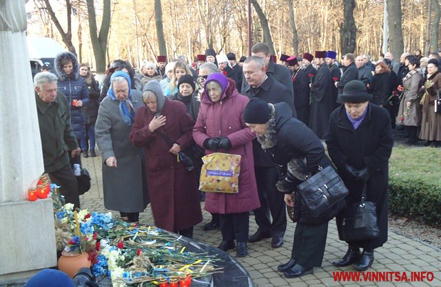Учасники зібрання делегували представників для покладання гірлянд з квітів та ялинових гілок до могили першого вінницького дослідника голодомору доктора історичних наук Іллі Шульги, який похований на Підлісному кладовищі; також для покладання гірлянд до меморіальних дошок на честь загиблого на Майдані вінничанина Максима Шимка (школа №13) та посмертно удостоєного звання Героя України льотчика Костянтина Могилка (школа №23).