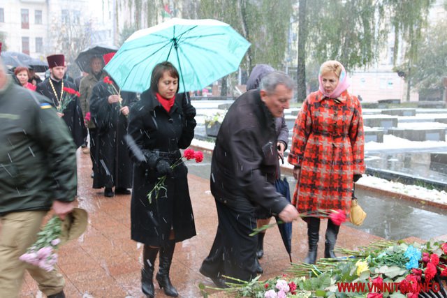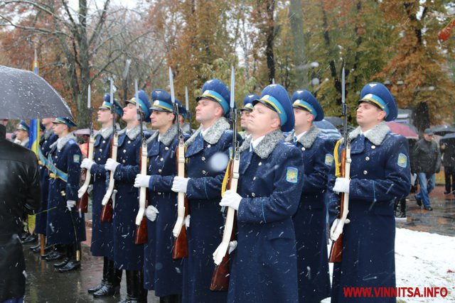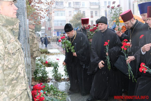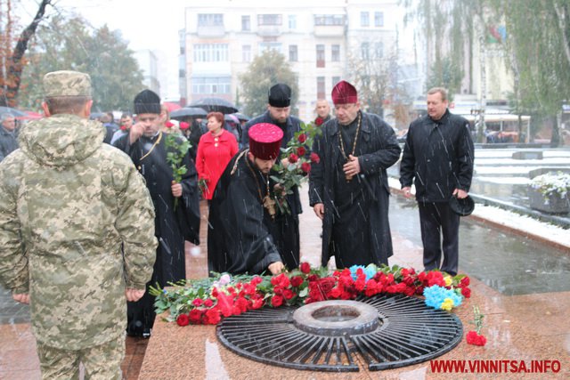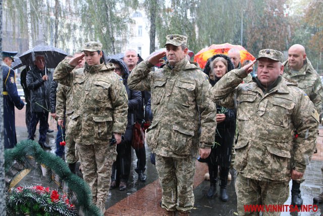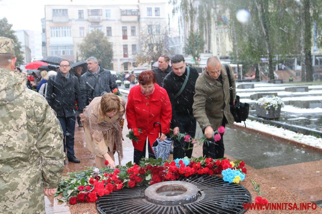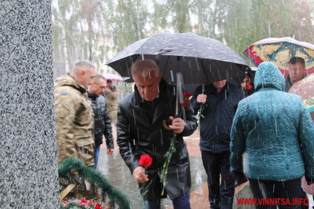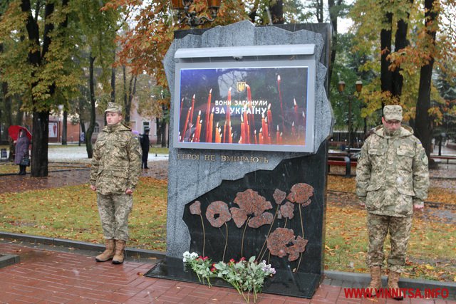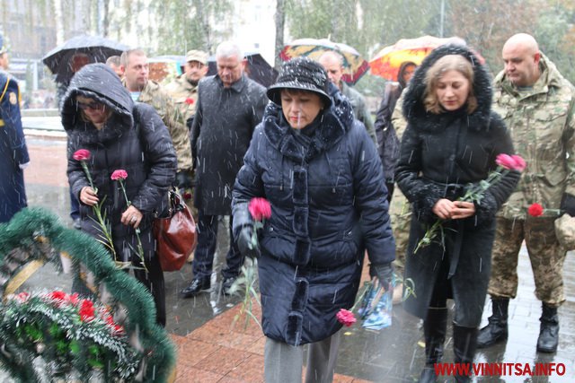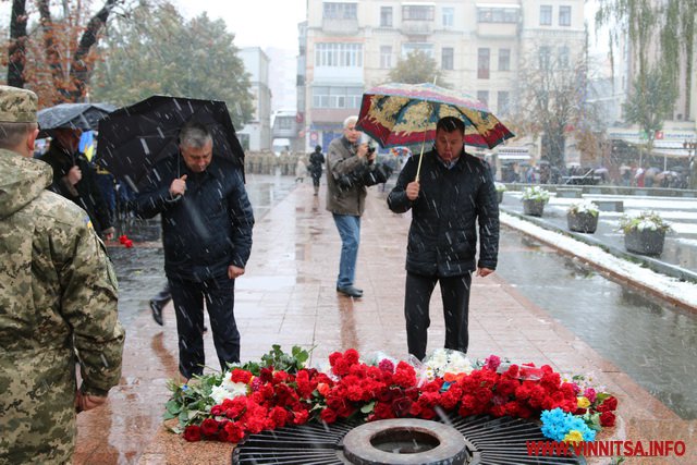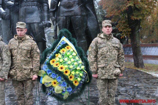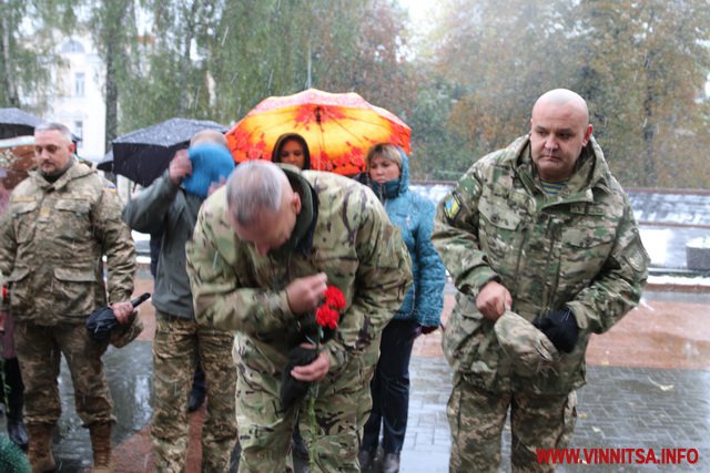 13 жовтня у Вінниці з нагоди Дня захисника України та Дня Українського козацтва відбулося покладання квітів до Меморіалу Слави та пам’ятного знаку Небесній Сотні та загиблим героям АТО.