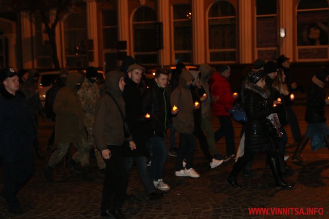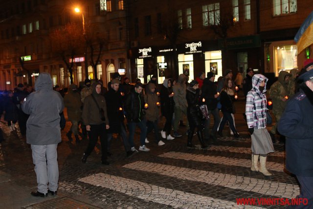 Близько півсотні вінничан з лампадками пройшлися центром Вінниці від краєзнавчого музею до пам’ятника жертвам Голодомору. Перед початком ходи для всіх присутніх був продемонстрований фільм про Голодомор.