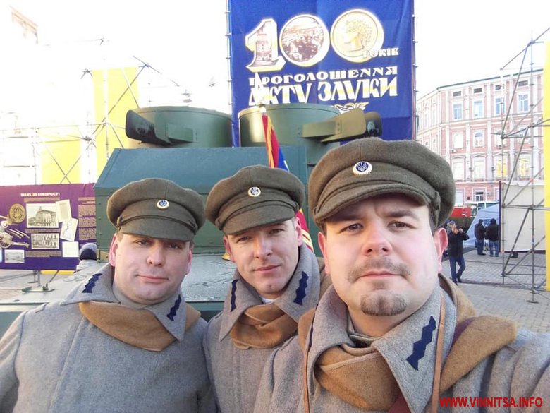 Вінницькі історики і реконструктори 22 січня в столиці. Вони учасники урочистостей з нагоди Дня Соборності України за участі Президента. З собою до Софійського собору вінничани привезли автопанцирний дивізіон Першого Галицького корпусу Галицької Армії.