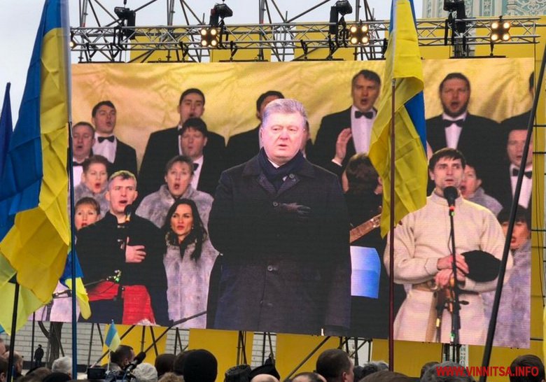 Під час промови Глава держави Петро Порошенко зауважив: «Наш шлях – це дорога до Євросоюзу, до НАТО, до миру і добробуту. Ми з вами зберегли державу, зцементували її фундамент і довели, що здатні здобувати перемоги на нашому власному шляху».