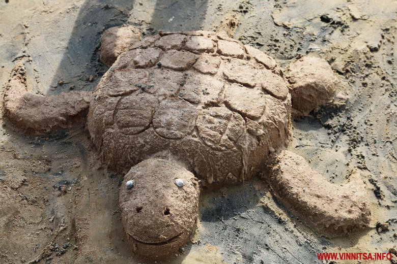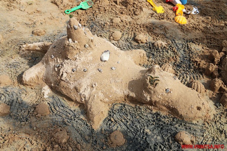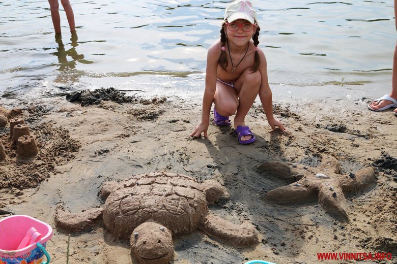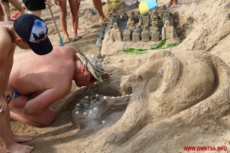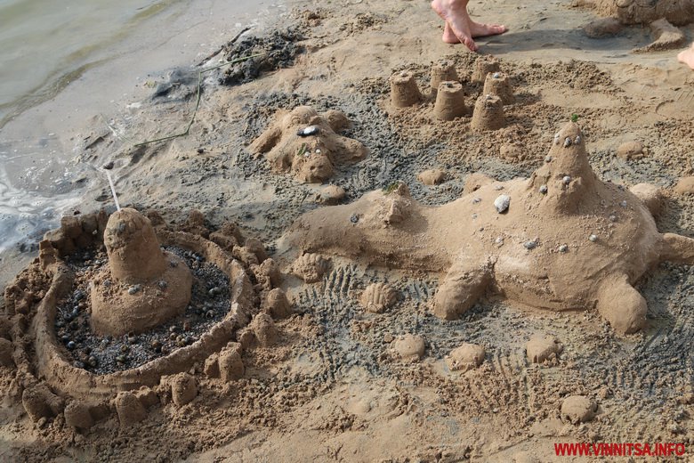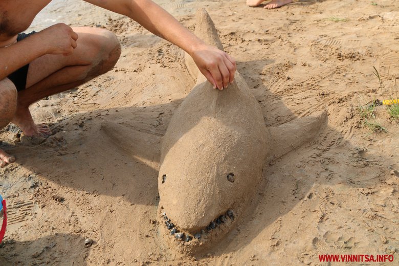 Фaнтaзії вінничaн не було меж. Найбільше привертала увагу метрова акула та козак, який курить люльку. Традиційно з піску ліпили замки, черепах, морські зірки, машинки, квітки та сердечка.