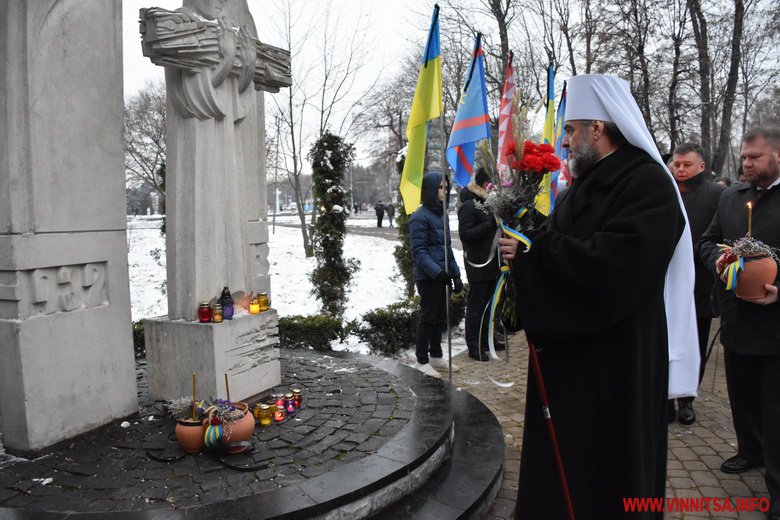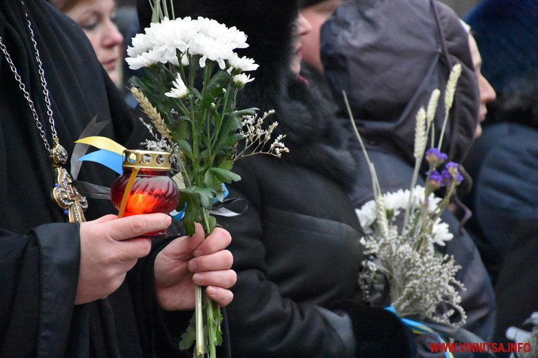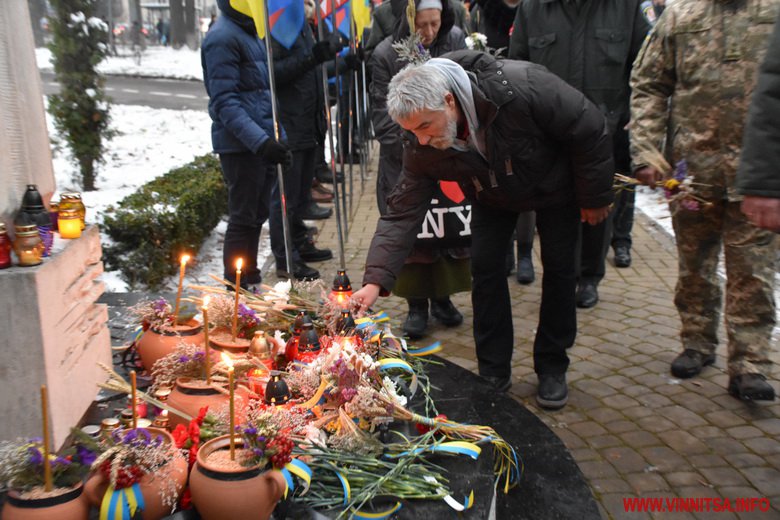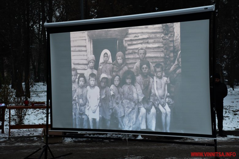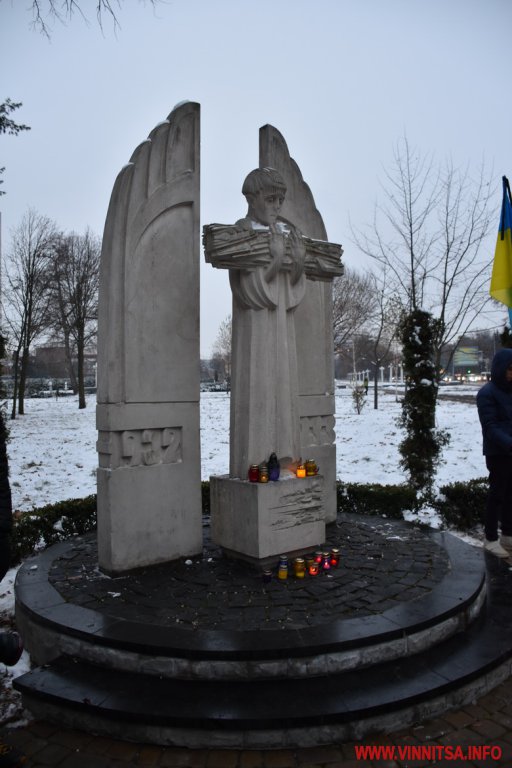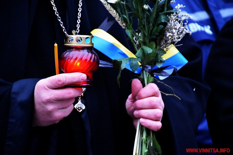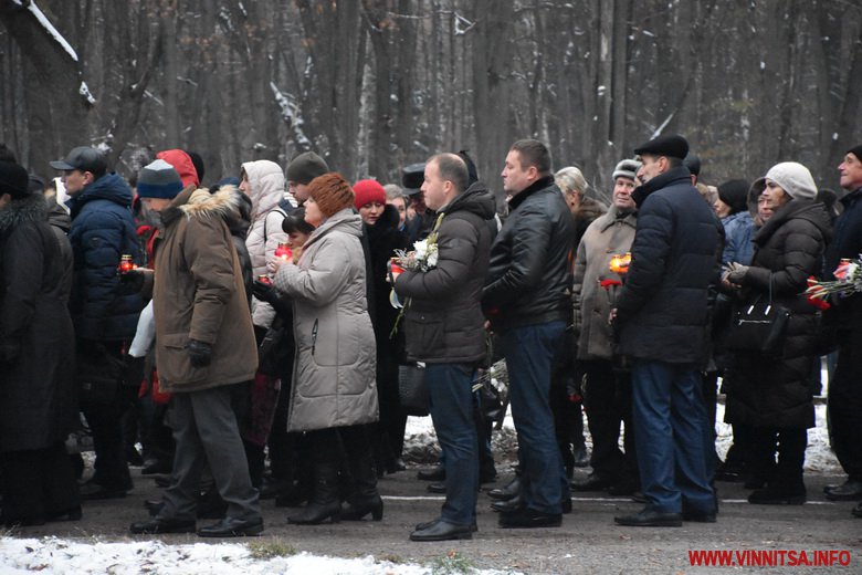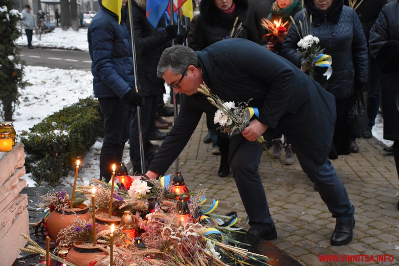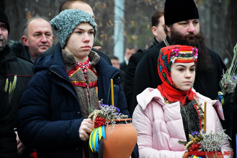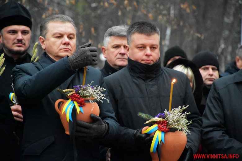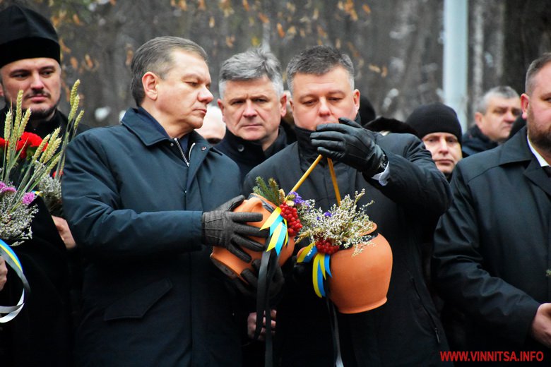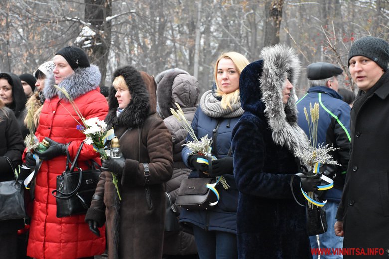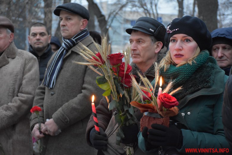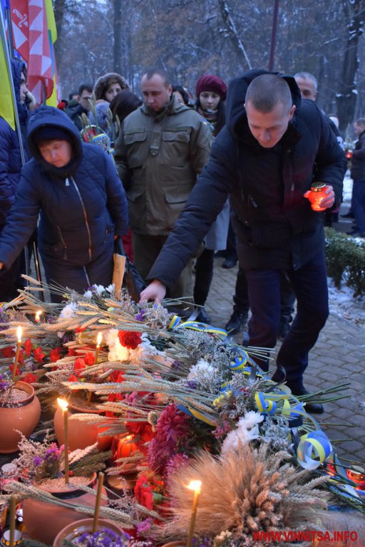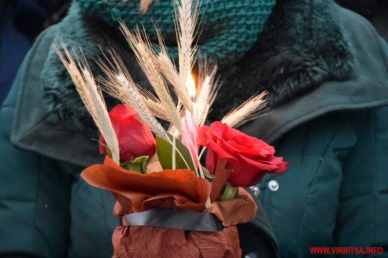 Близько сотні вінничан прийшли до пам’ятника жертвам Голодомору, щоб поставити квіти, лампадки, колоски та традиційні горщики із зерном. Вшанували пам’ять хвилиною мовчання.