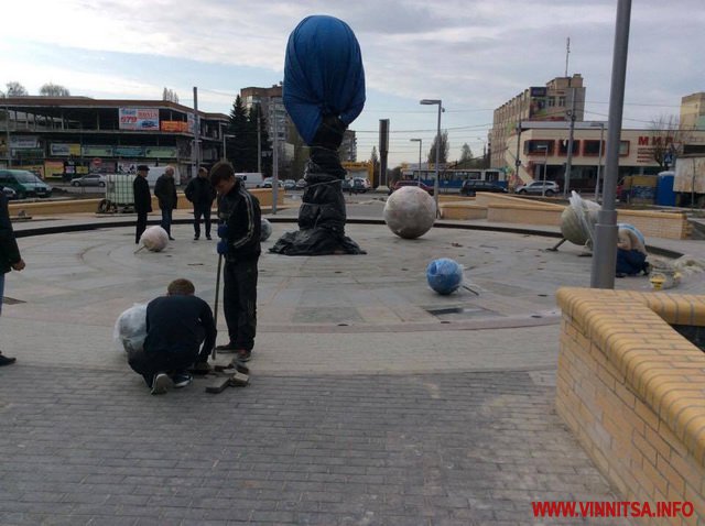 Як розповів кореспонденту Вінниця.info виконроб фірми «Сфера» Сергій Білаш, кулі, що символізують планети почали встановлювати 3 квітня, але ввечері 4 квітня, вінничани повалили кілька символів, тому їх всі зняли та сьогодні вранці закріплюють по новому.