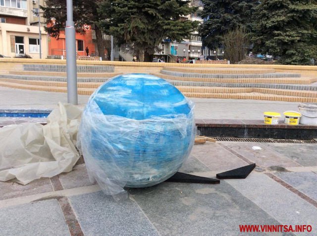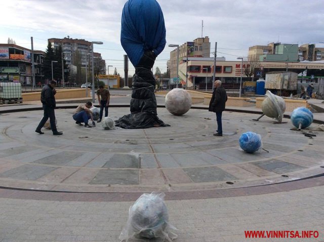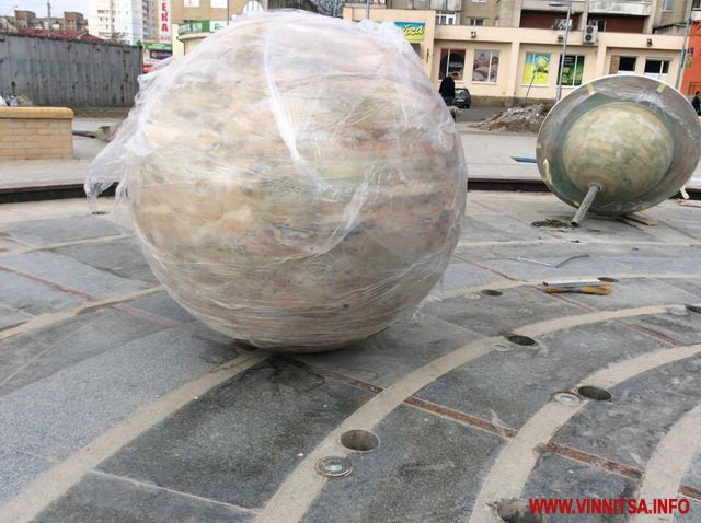 5 квітня зранку підрядники ПП «Сфера», які проводять реконструкцію проспекту Космонавтів у Вінниці, встановлюють на площі з фонтаном планети сонячної системи.