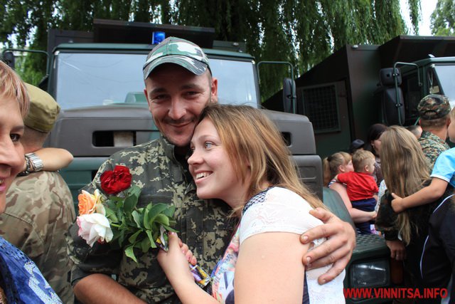 13 липня до Вінниці повернулись службовці частини 3008, які з травня місяця тримали оборону на блокпостах на буремному сході в зоні АТО.