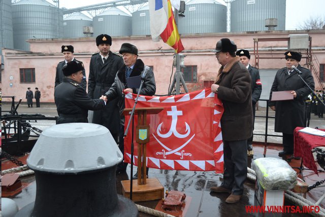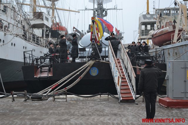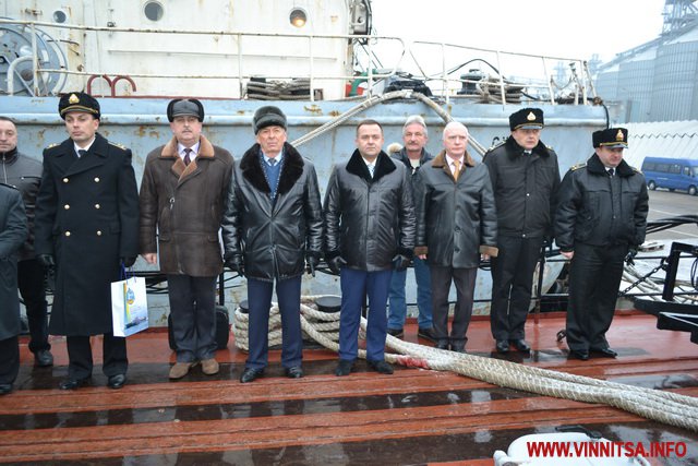 Наприкінці минулого року вінницька делегація побувала в Одесі, де наразі дислокується корвет «Вінниця». Поїздка відбулась з нагоди 40 річниці з дня спуску цього корабля на воду. Військовослужбовцям вручили грамоти міського голови та премії, а також передали продукти харчування та подарунки.