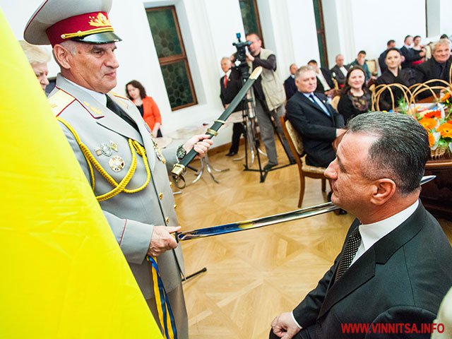 Также Михаилу Панькиву вручили рыцарскую именную саблю образца 1920 года. «…За высокое национальное достоинство и участие в построении национального государства, соответствие ваших жизненных принципов Кодексу рыцарской чести и уставу Ордена «Рыцарь Отчизны», как человека, который ежедневным кропотливым трудом укрепляет социально-экономическую мощь государства. За высокую способность к самоуправлению и эффективному управлению предприятием, преданность делу, последовательность и принципиальность в утверждении общечеловеческих принципов добра и справедливости…»