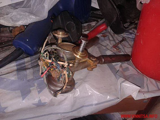 Було вилучено поліетиленові ємності, поліетиленові пакети з кранами об’ємом по 10 літрів, насосне та фільтруюче обладнання, металеві корки,верстат для закорковування, ампули з «Глюкозою» та незареєстровану вогнепальну зброю і набої різного калібру.