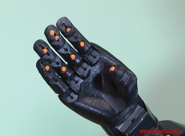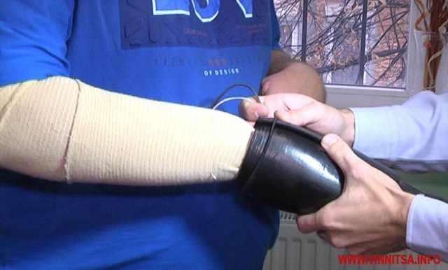 «Шукав людину, на якій його можна було протестувати нашу експериментальну модель. У Віталія взяли заміри кінцівки, протез змоделювали для нього індивідуально. Враховуючи характер травми. Деталі роздрукували на 3-Dпринтері з біо-полімеру. Він важить 250 грамів. Працює від імпульсів, які надходять від працюючих м’язів тіла. Ті надходять до системи керування, яка і приводить протез в рух. Живиться прилад від акумулятора, яку для зручності Віталій кладе у задню кишеню», - пояснює Москалець.