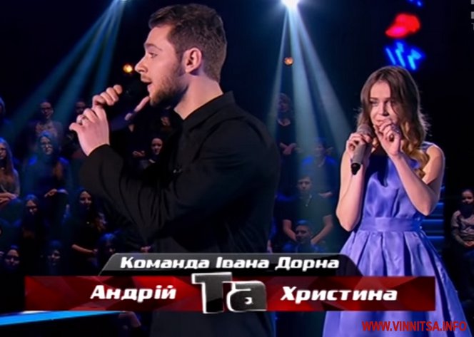 На «співочому» ринзі конкурсанти виконали композицію зіркового наставника Івана Дорна «Happy end». Під час голосування Святослав Вакарчук надав перевагу Андрію, однак Тіна Кароль, Потап і сам тренер Ваня Дорн підтримали тендітну дівчину Христину.