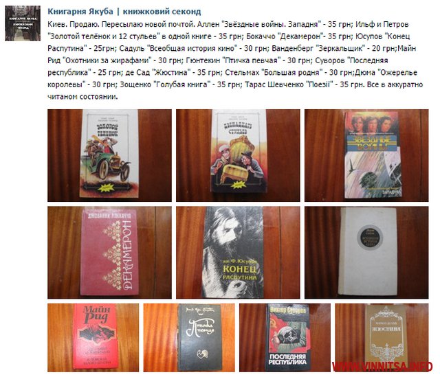 Вінничанин Святослав Кривенко з друзями однолітками створив перший в Україні книжковий онлайн секонд-хенд. Поки що він працює тільки в соціальній мережі «ВКонтакте», але організатори планують найближчим часом створити Всеукраїнський сайт та організувати в різних містах ярмарки з книгами бувшими у вжитку.