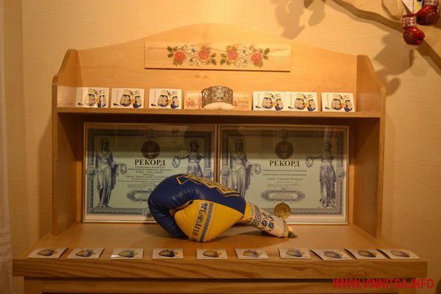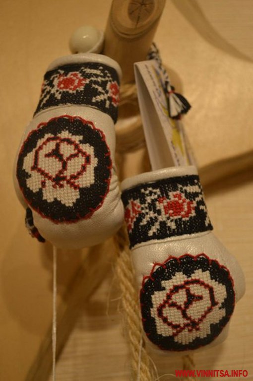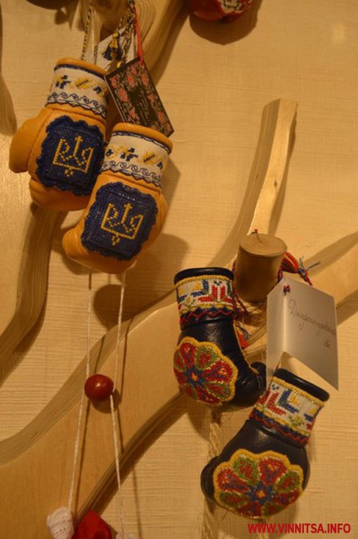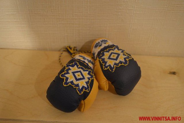 На виставці представлено 23 пари боксерських рукавичок сувенірного формату, кожна з яких прикрашена вишивкою, характерною для одного з регіонів України.