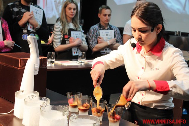 «Майстер-класи проводять справжні професіонали. Так, Наталя Кривошия, яка працює у вінницькому закладі нещодавно стала фіналісткою Всеукраїнського чемпіонату бариста. Змагатися з найсильнішими і війти в фінал – це вже перемога. Захід проводиться за правилами світового чемпіонату і є самим престижним серед всіх кавових змагань. За 15 хвилин учасник має презентувати свою кавову суміш, приготувати три четвірки напоїв: 4 еспресо, 4 капучино і 4 порції авторського напою. Головним суддею фіналу на даному Чемпіонаті був Майкл Стампф який є представником WCE (World Coffee Events) Канада Ванкувер», – розповіла заступник директора департаменту адміністративних послуг Вінницької міської ради Людмила Перова.