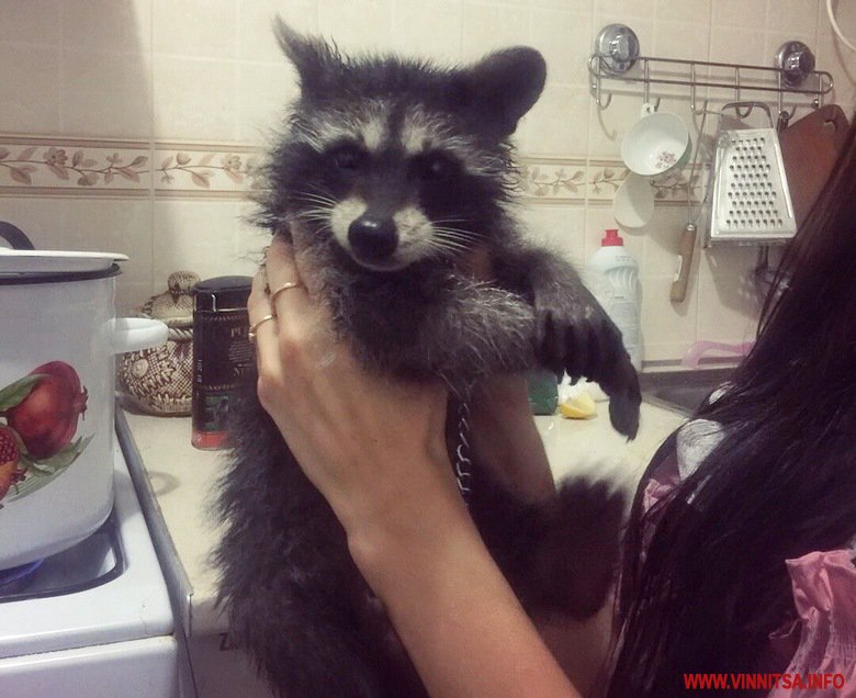Вінничани виховували у квартирі маленького єнота. Новий житель у сім’ї Наталі Савінської з’явився у травні. Його привезли як подарунок аж з Луганщини. Крихітному звіряті було всього три тижні. Доглядати за ним доводилося, як за дитиною.