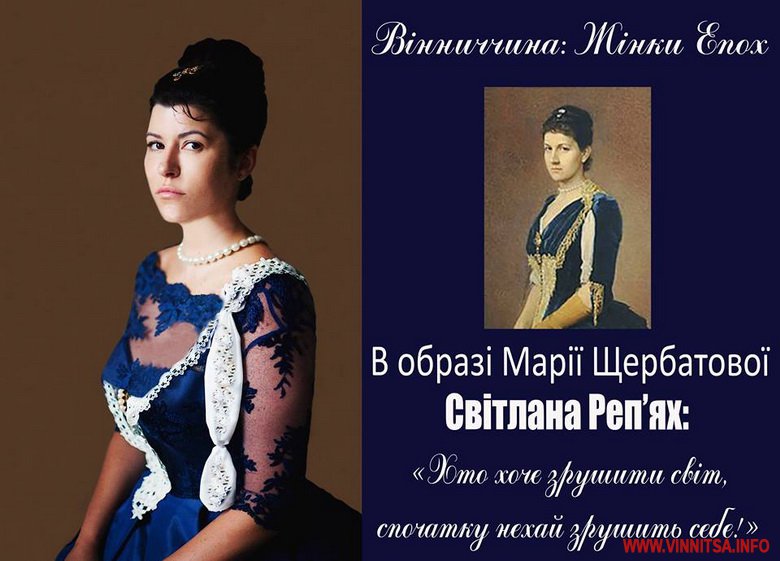 В образі Марії Щербатової -  власниця дитячого садочку «Евріка». Місіс Вінниця 2018 Світлана Реп'ях.
