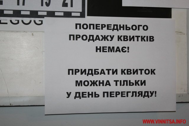 Станом на 13 годину вінничани повністю розібрали білети на сеанс о 19:25. На 17:00 і 21:55 білети ще є, але небагато. Попереднього продажу квитків немає, придбати їх можна тільки у день перегляду.