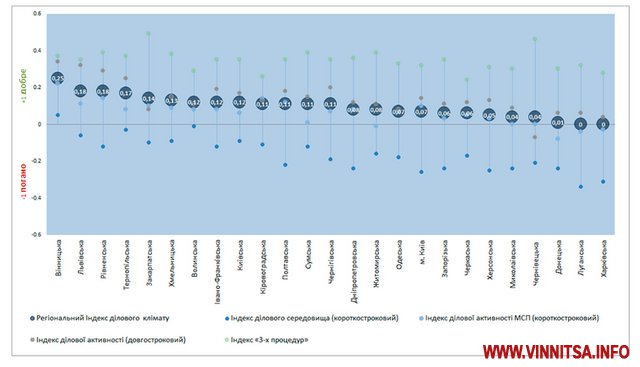 У Вінницькій області найкращий бізнес-клімат в Україні. Про це свідчать показники рейтингу, який проводили фахівці Інституту економічних досліджень та політичних консультацій. Вінниччина єдина в державі, де підприємці позитивно оцінили поточний стан ділового середовища. До ТОП-5 також увійшли чотири області західної України: Львівська, Рівненська, Тернопільська та Закарпатська.