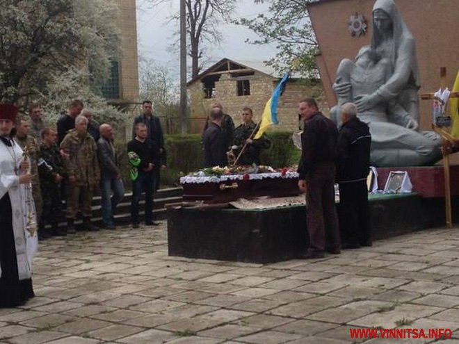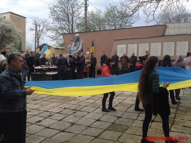 25 квітня у Жмеринці відбулося прощання з бійцем АТО – добровольцем батальйону ОУН Олегом Пугачовим. Поховали бійця на батьківщині його роду, в селі Станіславчик. На прощальній церемонії грала його улюблена пісня – «Как хочется жить…»