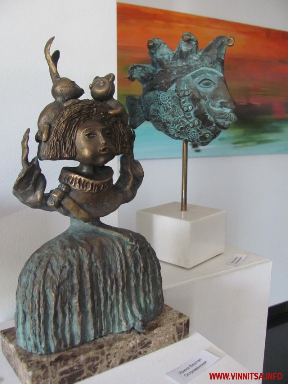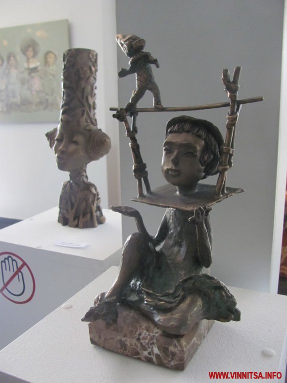Для новой выставки в любимой Виннице художница передала скульптуры своего излюбленного жанра - утрировано кукольные и цирковые, что четко передают ситуации, которые, сами того не осознавая, как тонкие камертоны, безошибочно чувствуют художники.