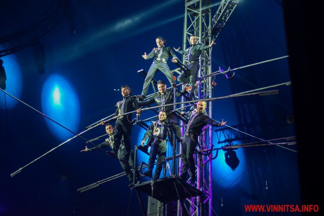Победители циркового фестиваля в Монте-Карло 2017, они шокируют вас своим номером, который вошел в книгу рекордов Гиннеса. Одновременно семь артистов пройдут по канату без страховки, образуя пирамиду под куполом цирка.