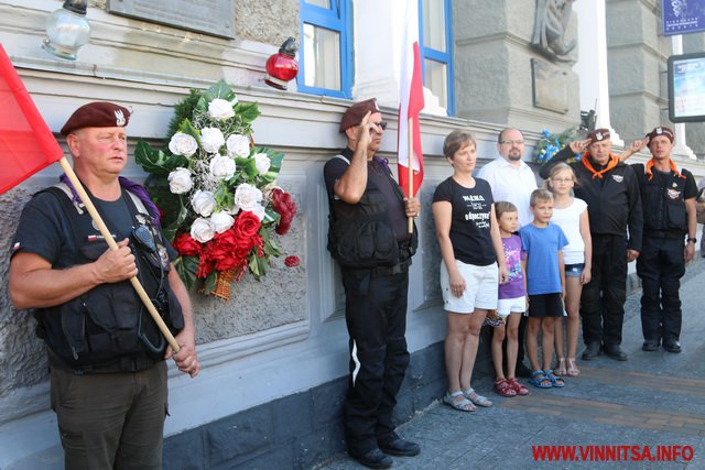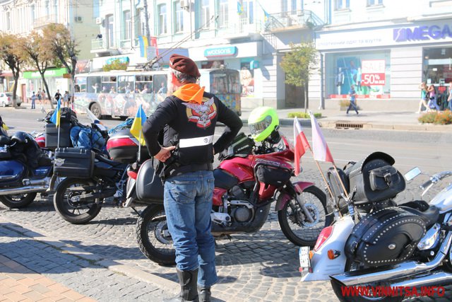 У Вінниці представники байк-колони зупинилися на Соборній біля пам'ятної дошки Пілсудському та співали гімн Републіки Польща.