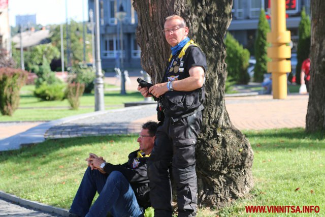 Поки польські делегати проводили урочисті заходи біля пам’ятної дошки Пілсудському, їхні байки близько години охороняли представники поліції Вінниці. Поляки на байках також відвідали Центральний парк у Вінниці.