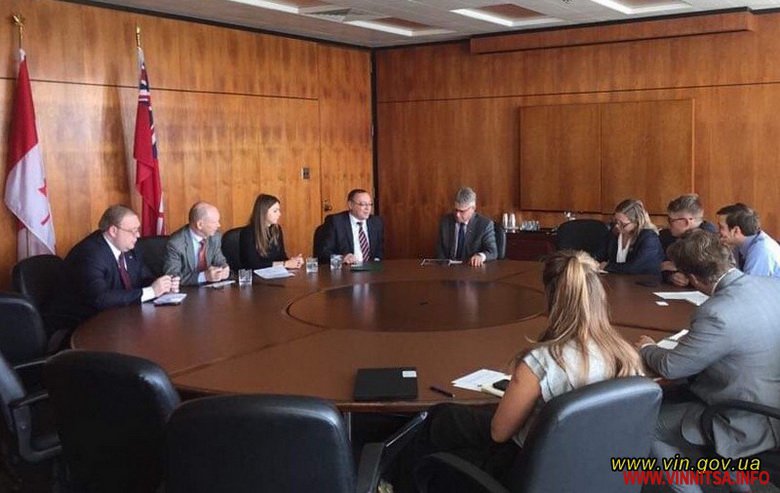 Крім того, за участі Генерального Консула України в Торонто, Андрія Веселовського, відбулась зустріч голови Валерія Коровія з радником Міністра міжурядових справ провінції Онтаріо, депутатом регіонального парламенту Нормом Міллером та представниками Міністерства економічного розвитку, створення робочих місць і торгівлі. Під час перемовин було обговорено низку питань, пов’язаних з розвитком Україно-канадського співробітництва, зокрема Валерій Коровій коротко презентував економічний потенціал області, як регіону, що потужно розвивається. Очільник області не оминув того факту, що Вінниччина – лідер в Україні за рівнем виробництва м'яса, курятини, молока, кукурудзи, соняшника, буряка та олії.